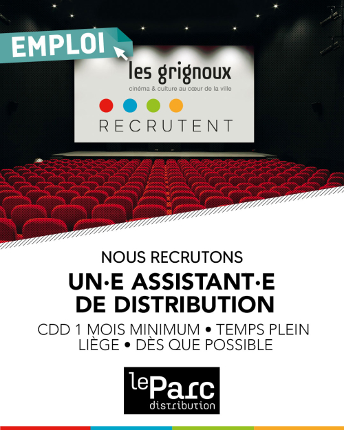 Nous recherchons UN·E ASSISTANT·E DE DISTRIBUTION en contrat de remplacement (1 mois minimum). Les tâches consistent principalement à assurer le suivi des réservations de films et du planning de programmation, la logistique et la circulation des copies, la gestion des bordereaux et factures. Vous contribuerez également à l'élaboration de campagnes médiatiques et marketing lors de la sortie des films. Intéressé·e ? Remplissez notre formulaire en ligne, nous vous recontacterons rapidement !