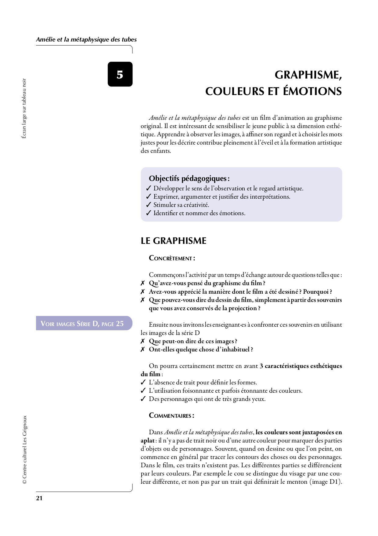 Extrait du dossier pédagogique réalisé par Les Grignoux et consacré à Amélie et la métaphysique des tubes un film d'animation de Maïlys Vallade et Liane-Cho Han France, 2025, 1h17