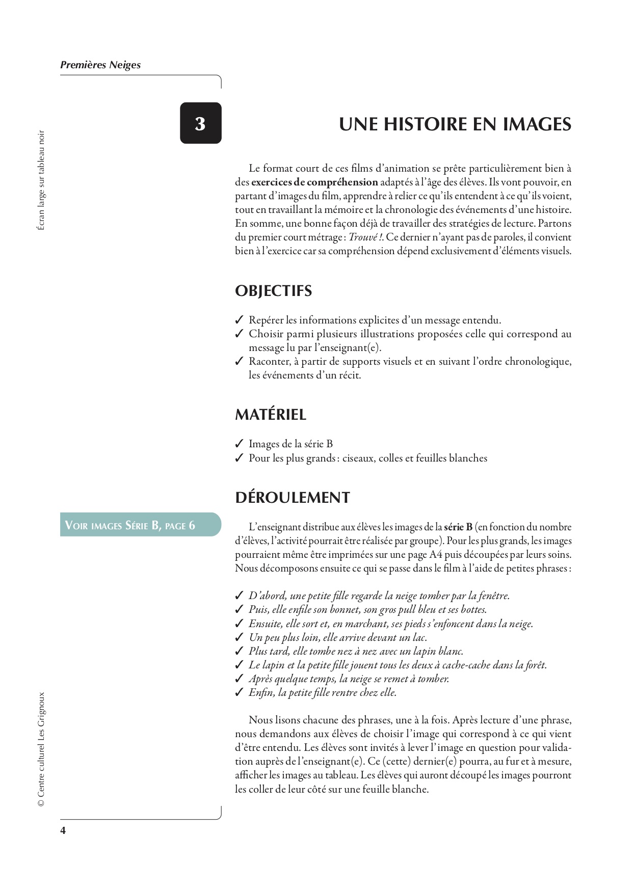 Extrait du dossier pédagogique réalisé par Les Grignoux et consacré à Premières Neiges un film d'animation d'Arnaud Demuynck France/Belgique, 2025, 38 minutes