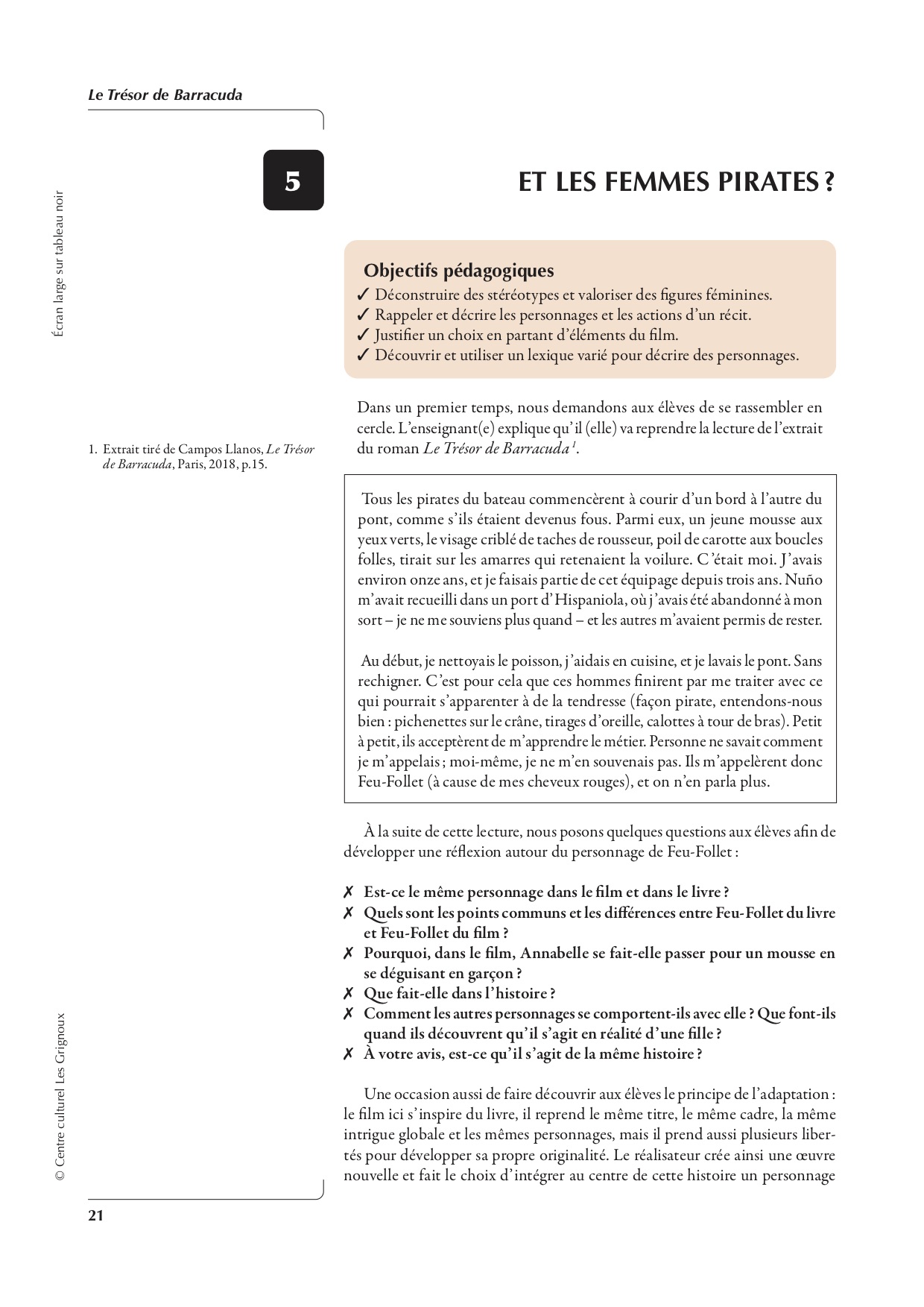 Extrait du dossier pédagogique réalisé par Les Grignoux et consacré à Le Trésor de Barracuda un film d'animation de Adriàn Garcia Espagne/Belgique, 2026, 1h27
