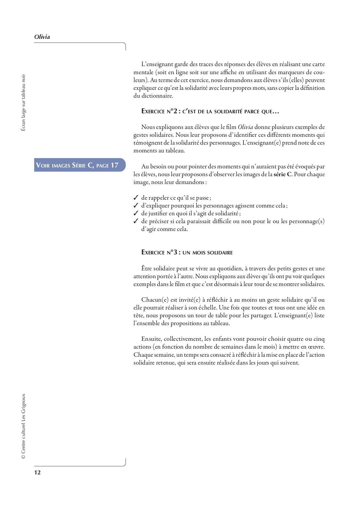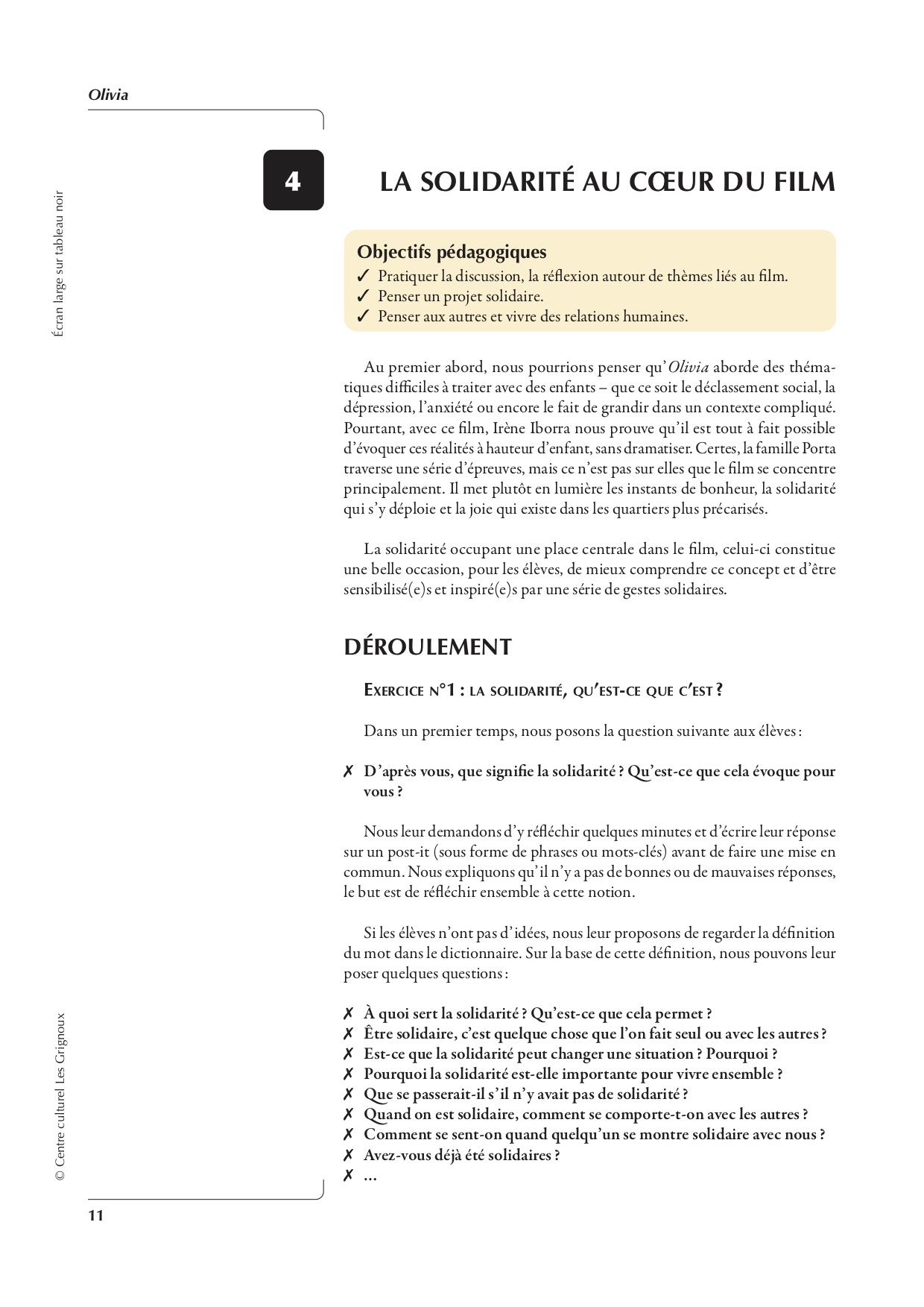 Extrait du dossier pédagogique réalisé par Les Grignoux et consacré à Olivia un film d'animation de Irène Iborra Espagne/France/Belgique/Chili/Suisse, 2026, 1h10